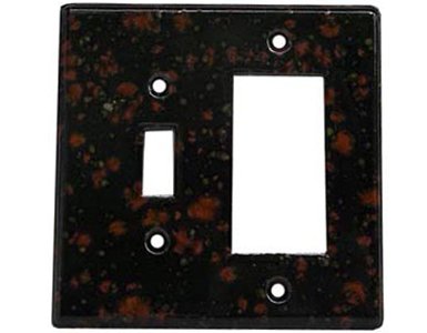 Designed and fired in Minneapolis, MN. No two switch plates are ever quite the same. Quiet and classy with understated elegance glazed in a unique cheetah pattern. A perfect look for when you want something wild, a dark black background with orange spots on it..../ Cheetah Ceramic Switch Plate / 1 Toggle - 1 Rocker / Wall Switches