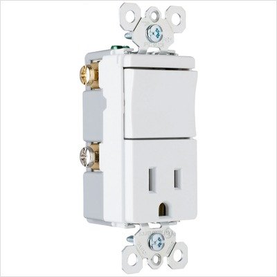 TM838ICC Features: -One three way switch and single outlet. -TradeMaster collection. -Ivory color. -Impact-resistant face and body. -External screw-pressure-plate back and side wired. -Full wraparound metal strap with lock-in tabs. -Unique 'up/down' switches match the look and feel of standard Decorator switches. -All screws are tri-drive. -Patented split circuit tab is easily accessible, and can be reinstalled without a tool. -Ground screw position under the end of the strap minimizes the risk of contact. -Fully rounded back body protects wires from being damaged by sharp edges. -Tamper-resistant version features dual mechanical shutter system to help prevent insertion of foreign objects. Specifications: -120/125 Volts. -Manufacturer provides 1 year warranty. -Overall dimensions: 3.81'' H x 1.29'' W x 1.59'' D..../ TradeMaster 3.81" 15A 120/125V Decorator One Three Way Switch and Single Outlet in Ivory / Wall Switches